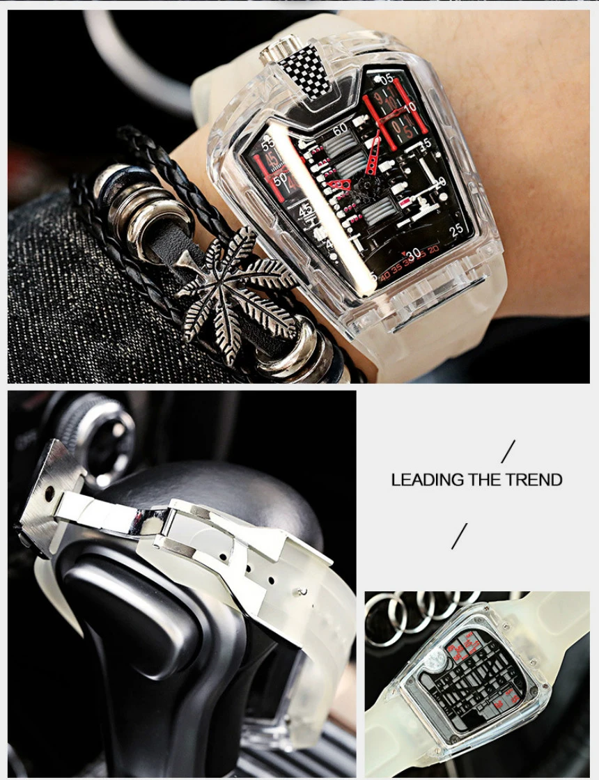 Men's Fashion Trend Personality Classic Quartz Watch Luxury Racing Free Silicone Strap Clock Transparent Movemen Relogio