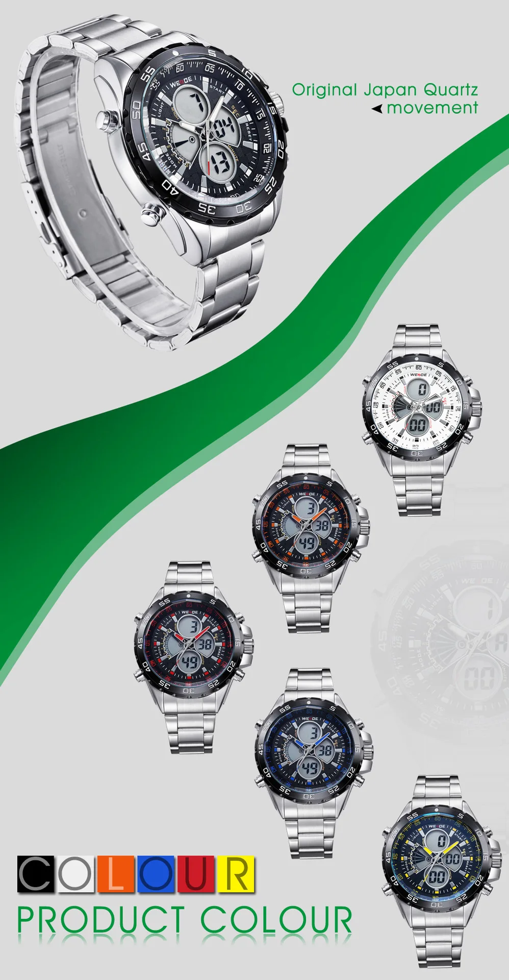 | WEIDE Watch Men Relogio Masculino Watch Luxury Brand Men Digital Auto Date Quartz Watches Stainless Steel Watch Military Watch |