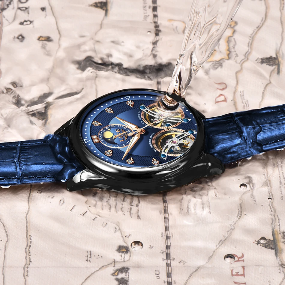 Agelocer Luxury Watch Men Automatic Mechanical Watch Skeleton Waterproof Stainless Steel Watch 5401A1