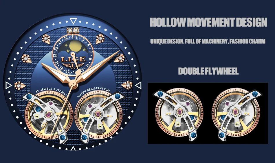 | 2020 New LIGE Men Watches Luxury Leather Double Tourbillon Mechanical Watch Men Fashion Business Automatic Waterproof Watch+Box |