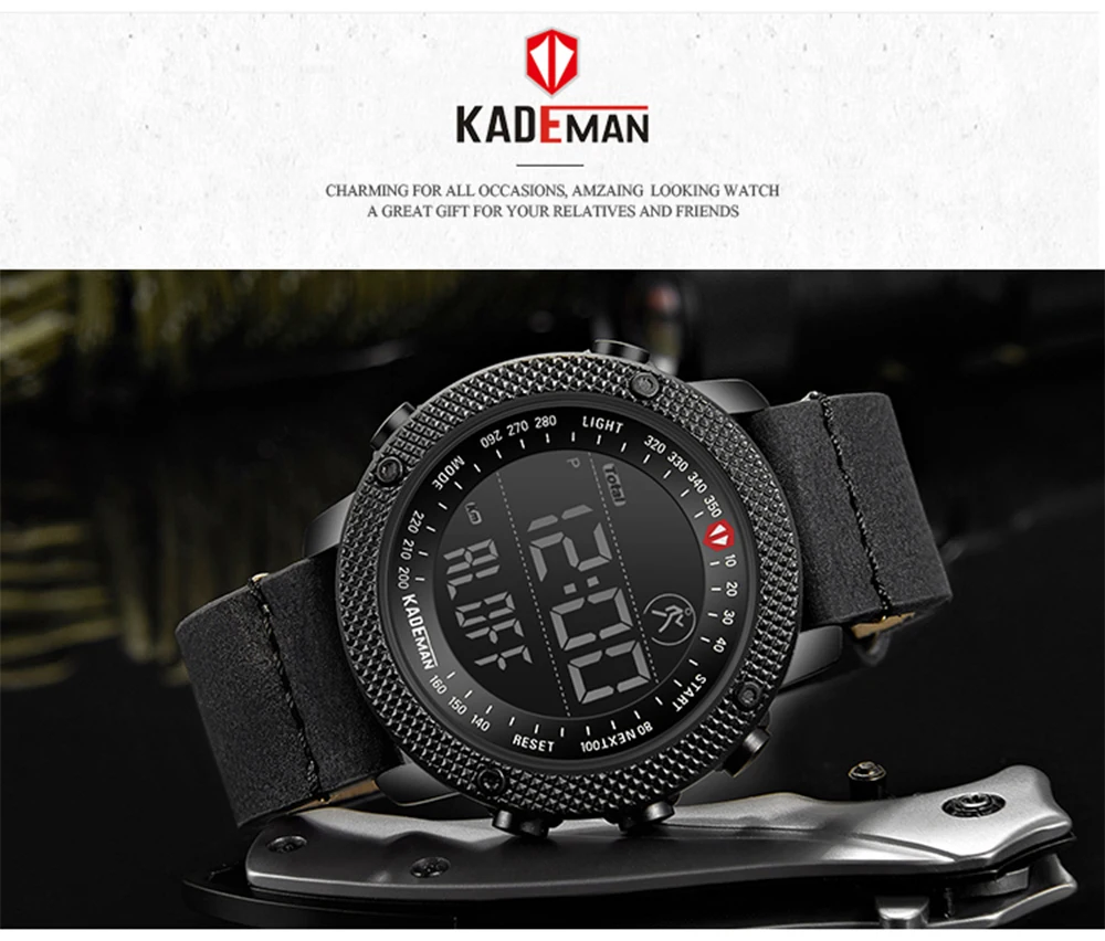 | KADEMAN Men Watch Leisur Sport Digital Army Step Count Waterproof Leather Hand Clock Top Brand Male Wristwatch Relogio Masculino |