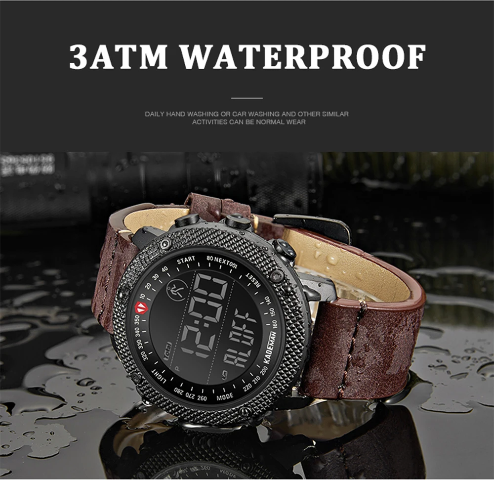 KADEMAN Men Watch Leisur Sport Digital Army Step Count Waterproof Leather Hand Clock Top Brand Male Wristwatch Relogio Masculino