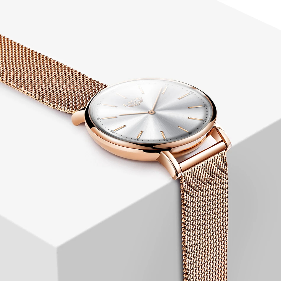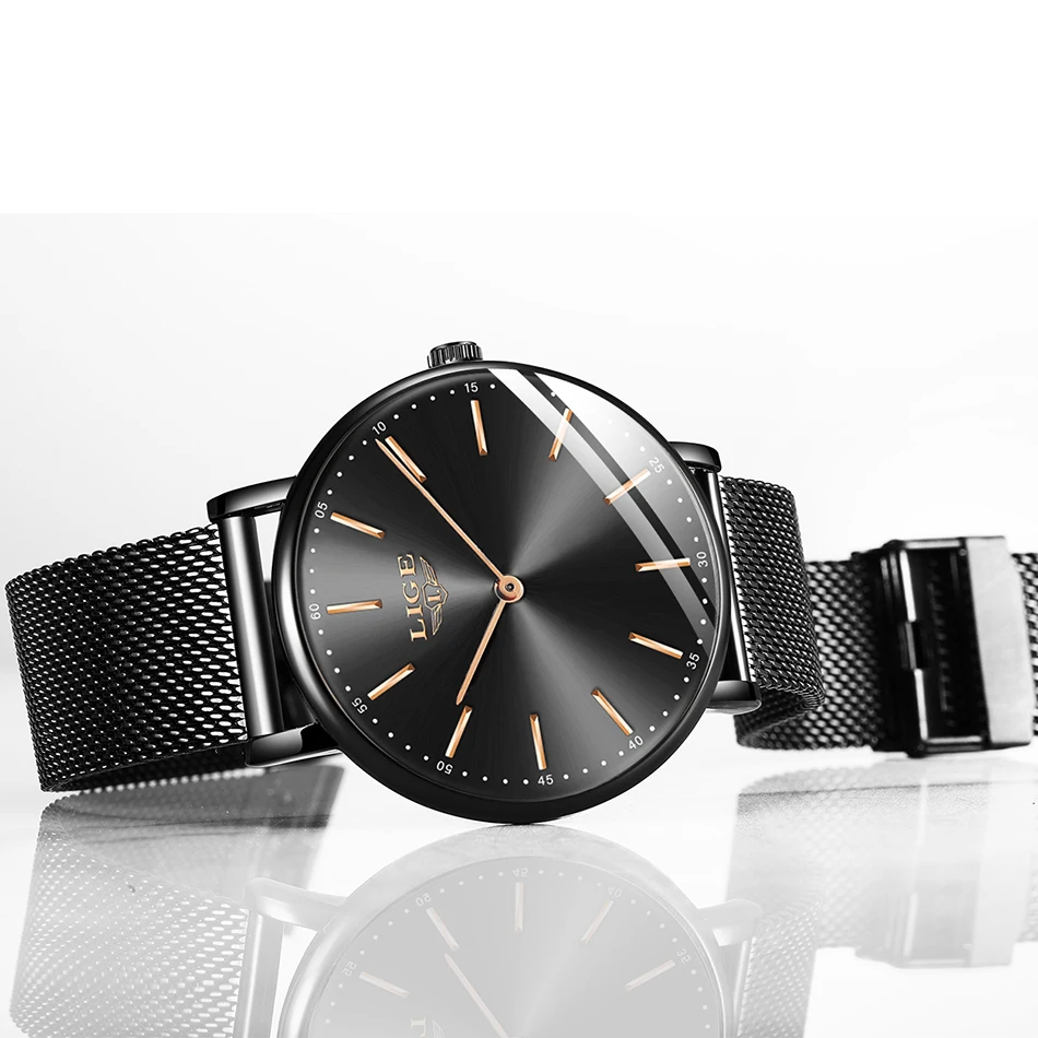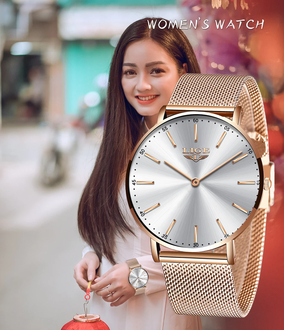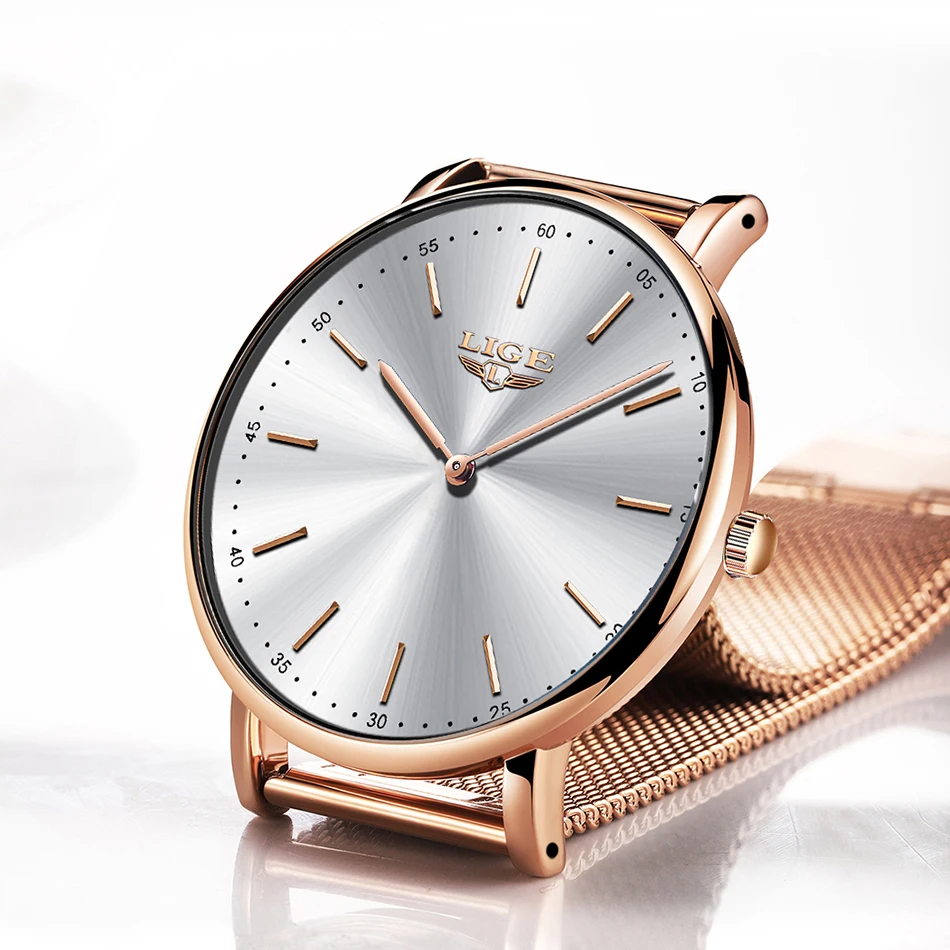 | LIGE Simple Women Watches 2020 Fashion Ladies Wristwatch Casual Grid Steel strap Ultra thin Quartz Watch Woman Relogio Feminino |
