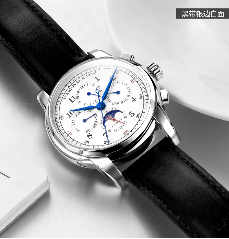 | Carnival Automatic Watches Men Moon phase Multi-function relogio masculino Top Brand Luxury Mechanical men watch genuine leather |
