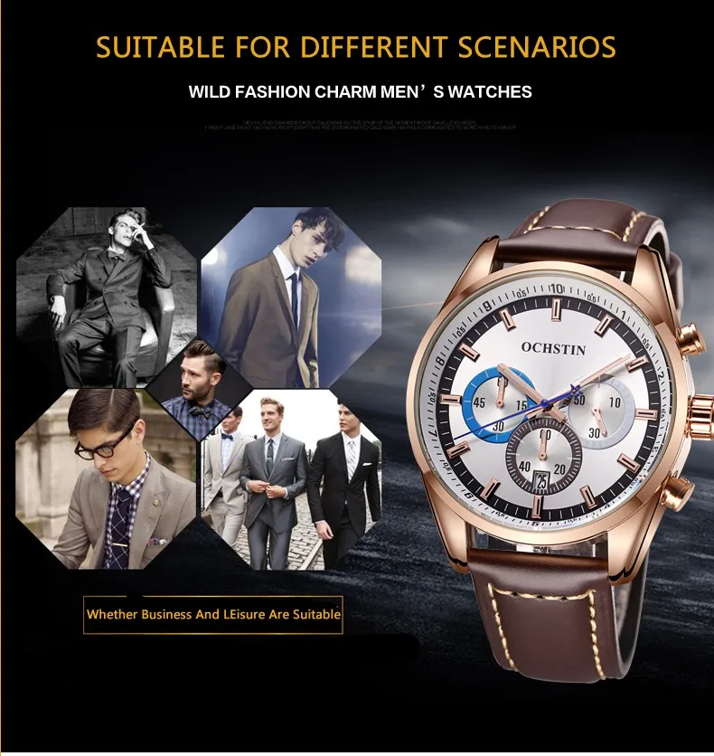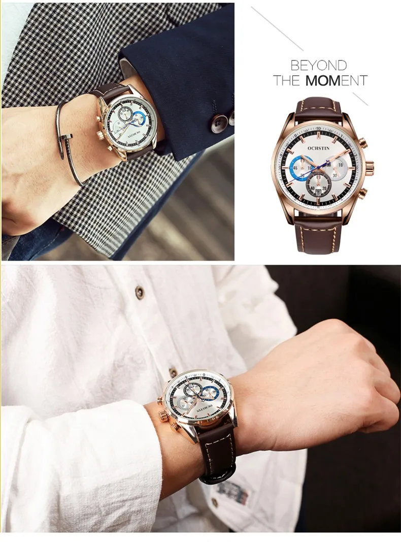 | OCHSTIN Fashion Men Watch Waterproof Military Chronograph Sports Watch Men Quartz Leather WristWatch Men Relogio Masculino 2019 |