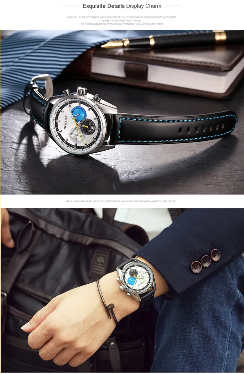 OCHSTIN Fashion Men Watch Waterproof Military Chronograph Sports Watch Men Quartz Leather WristWatch Men Relogio Masculino 2019