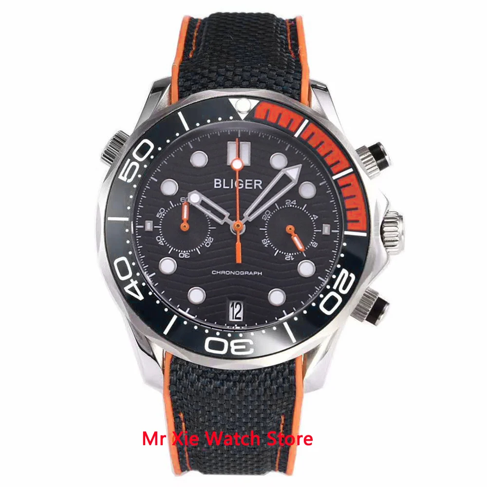 | Bliger 41mm Quartz Watch Men Sapphire Glass Luminous Waterproof Rubber Strap Calendar Sport Chronograph Function Wristwatch Men |
