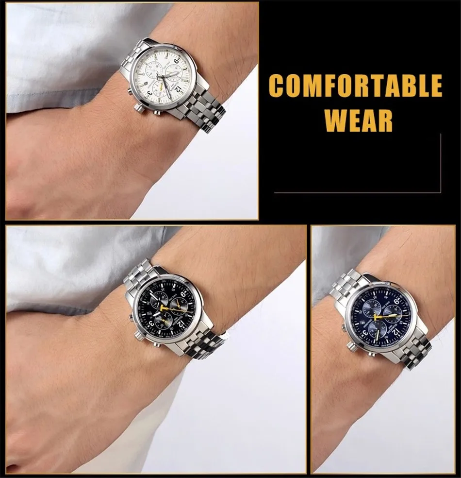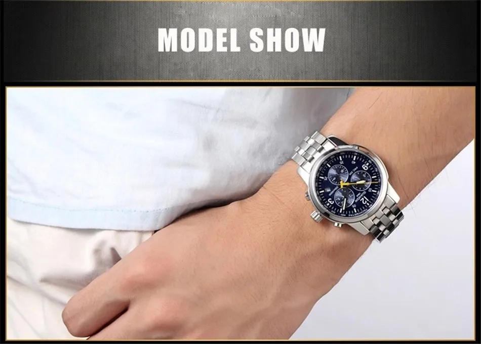 REWARD Men Watch Simple Style Quartz Watches Blue Stainless Steel Business Luxury Male Clock Chronograph Waterproof Wristwatch
