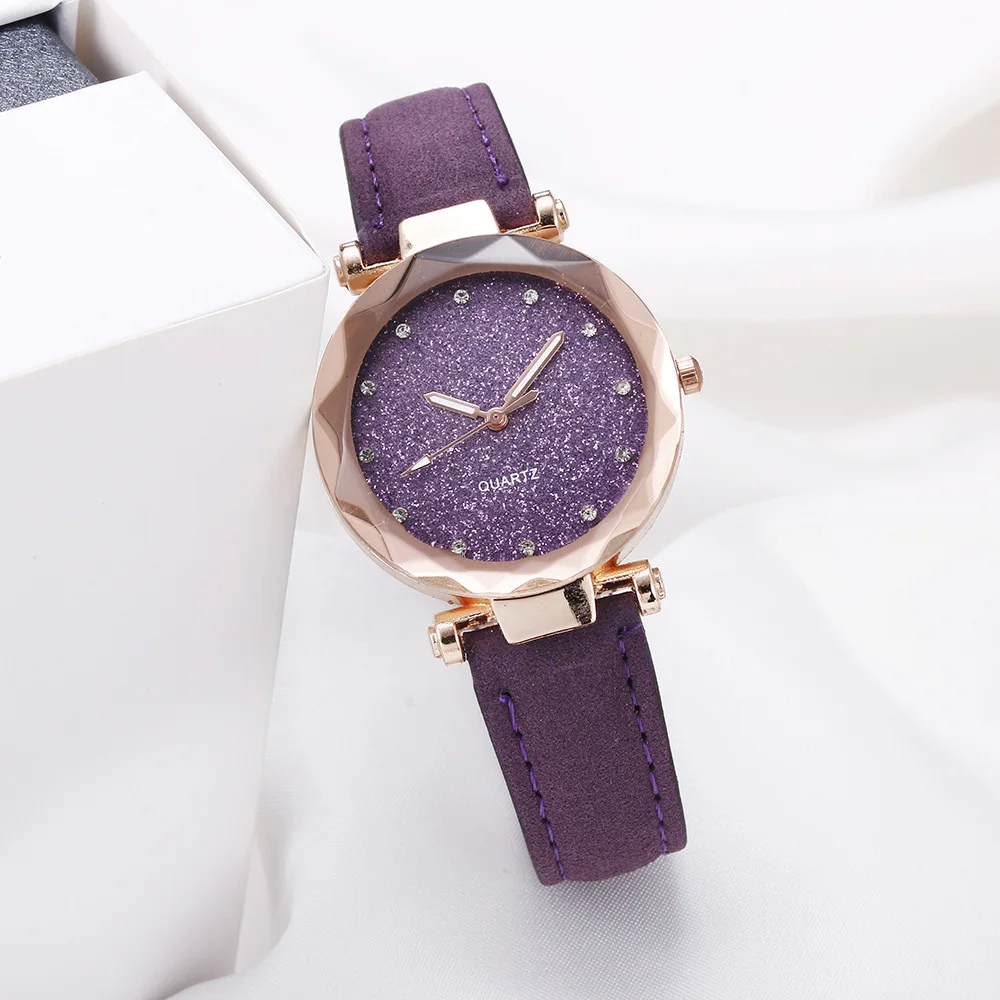 | 2020 Casual Women's Watch Romantic Starry Sky Leather Wrist Watch Rhinestone Designer Ladies Clock Dress Simple Gfit Montre Femm |