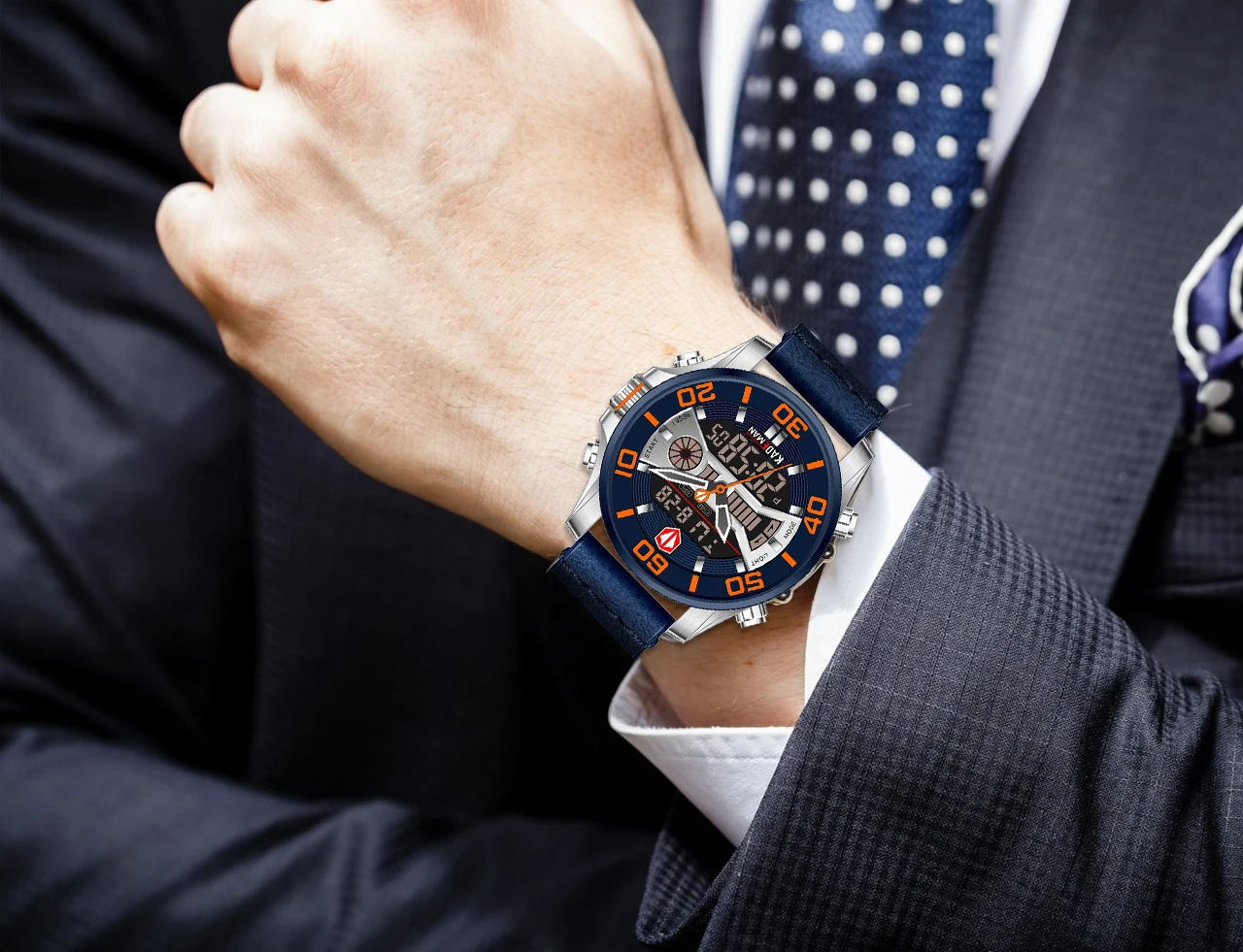 100% Real Kademan Brand watch. Unique shape designHigh quality Japan quartz movement.Tech dual display led wristwatch.Note:3ATM Waterproof, resist water drop.All pointers are working.