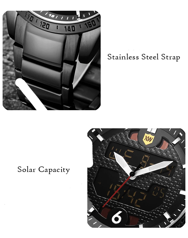 | relogio masculino Men Watches Solar Luxury Brand Full Steel Quartz Clock Digital LED Watch Army Military Sport Watch 2019 |