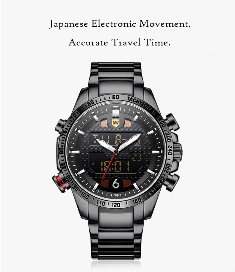 relogio masculino Men Watches Solar Luxury Brand Full Steel Quartz Clock Digital LED Watch Army Military Sport Watch 2019