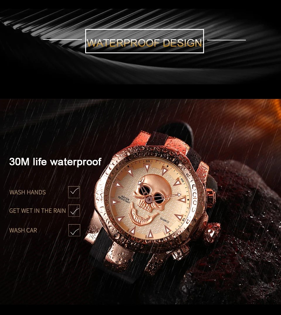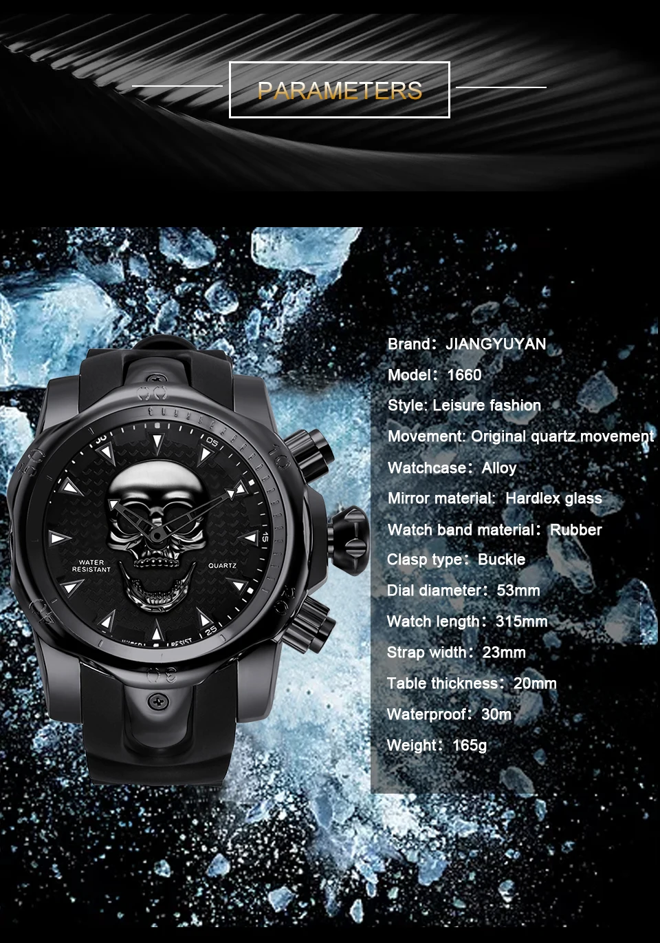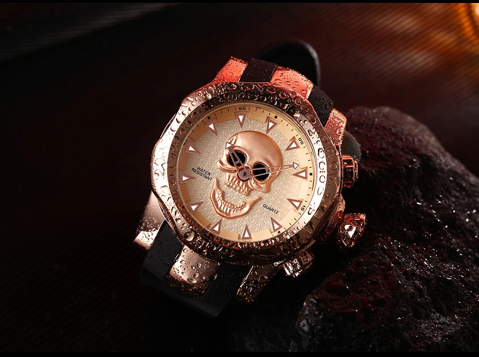 JIANGYUYAN New Big Dial Rotatable 3D Skull Watch Men Gold Black Ghost Silicone Band Wrist Watches For Men Luxury Brand Casual
