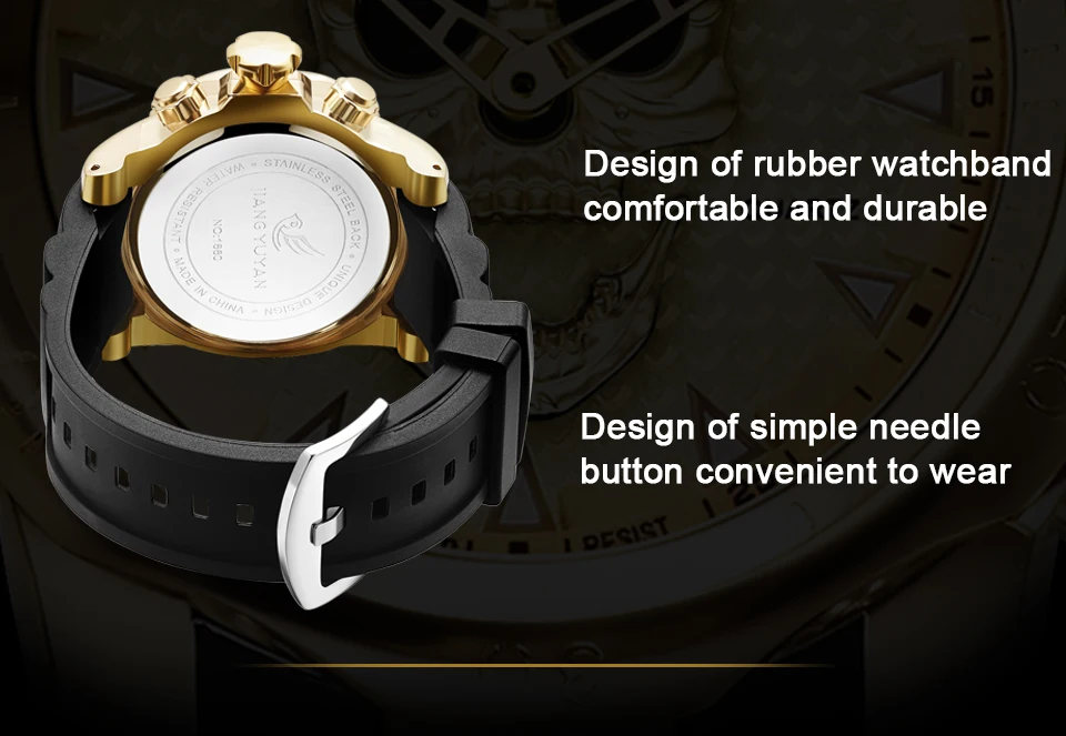 The best product you are looking for is "JIANGYUYAN New Big Dial Rotatable 3D Skull Watch Men Gold Black Ghost Silicone Band Wrist Watches For Men Luxury Brand Casual". This product is available and ready to be purchased. Get attractive discounts every time you shop in our store (aliexpress.com). Aliexpress also provides a coupon of $ 3 for the first buyer to shop there. don't forget to bookmark our store page so you can go shopping again anytime..