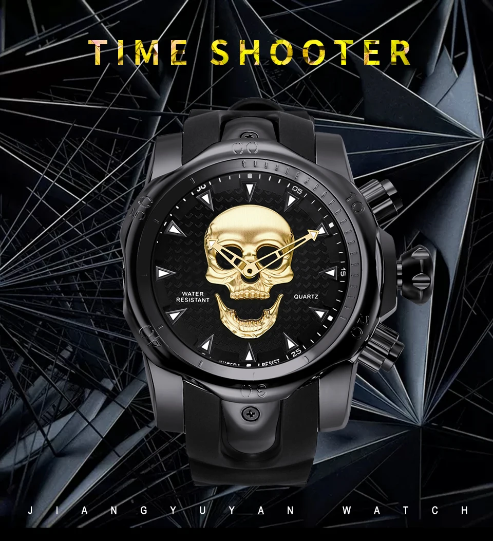 | JIANGYUYAN New Big Dial Rotatable 3D Skull Watch Men Gold Black Ghost Silicone Band Wrist Watches For Men Luxury Brand Casual |