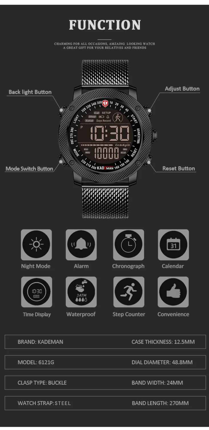 Check This Video Reviews review KADEMAN TOP Brand Men Watch Creative Step Counter Digital Sport Wristwatches Waterproof Mili