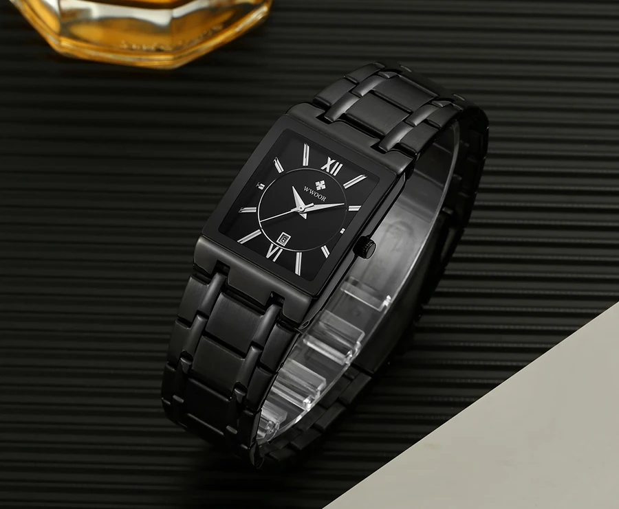 | Luxury Men's Watches Top Brand WWOOR Black Square Quartz Men Wrist Watch Stainless Steel Business Watch Male relojes hombre 2020 |