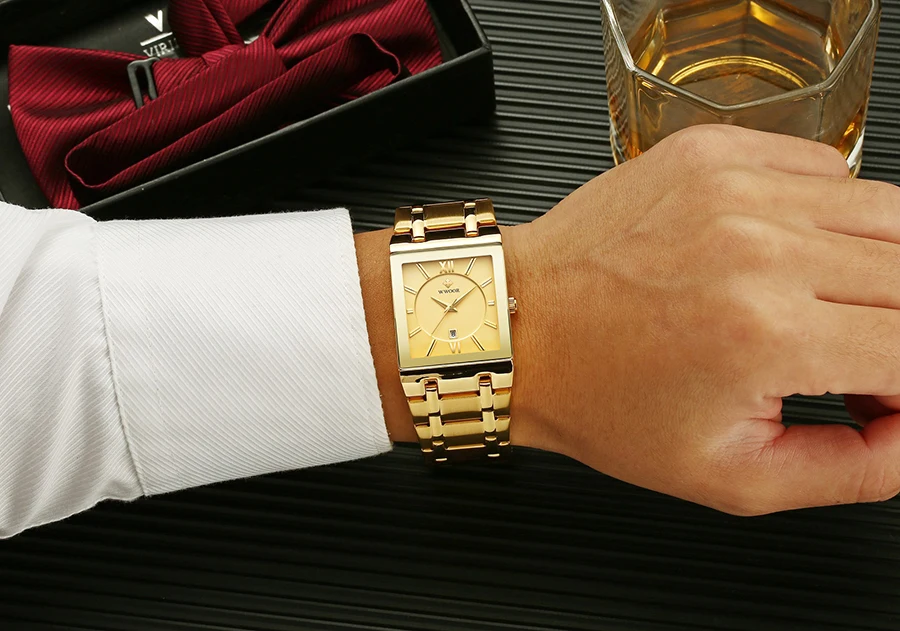 Check This Video Reviews Men Watches Top Brand Luxury WWOOR Gold Black Square Quartz watch men 2020 Waterproof Golden Male Wr