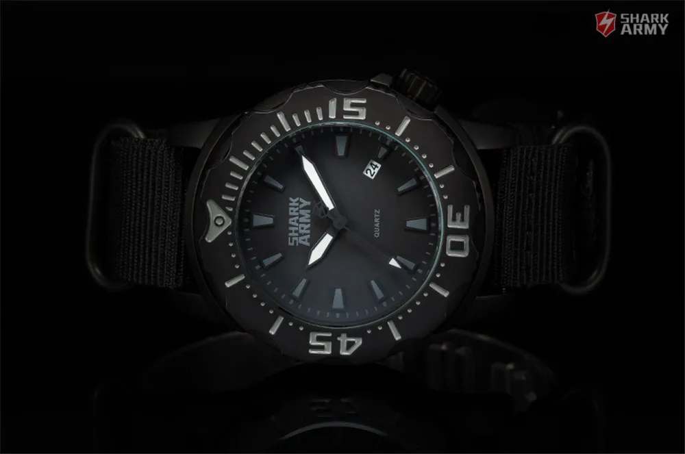 | SHARK ARMY Full Steel 100m Waterproof Date Display Black Nylon Band Luminous Hands Reloj Military Sport Quartz Men Watch /SAW193 |