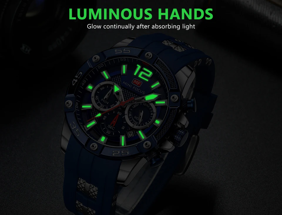 MINI FOCUS Luxury Brand Watches Men Waterproof Fashion Sport Clock Men Wristwatches Quartz Relogio Masculino Blue Silicone Strap