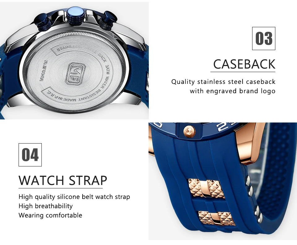 | MINI FOCUS Luxury Brand Watches Men Waterproof Fashion Sport Clock Men Wristwatches Quartz Relogio Masculino Blue Silicone Strap |