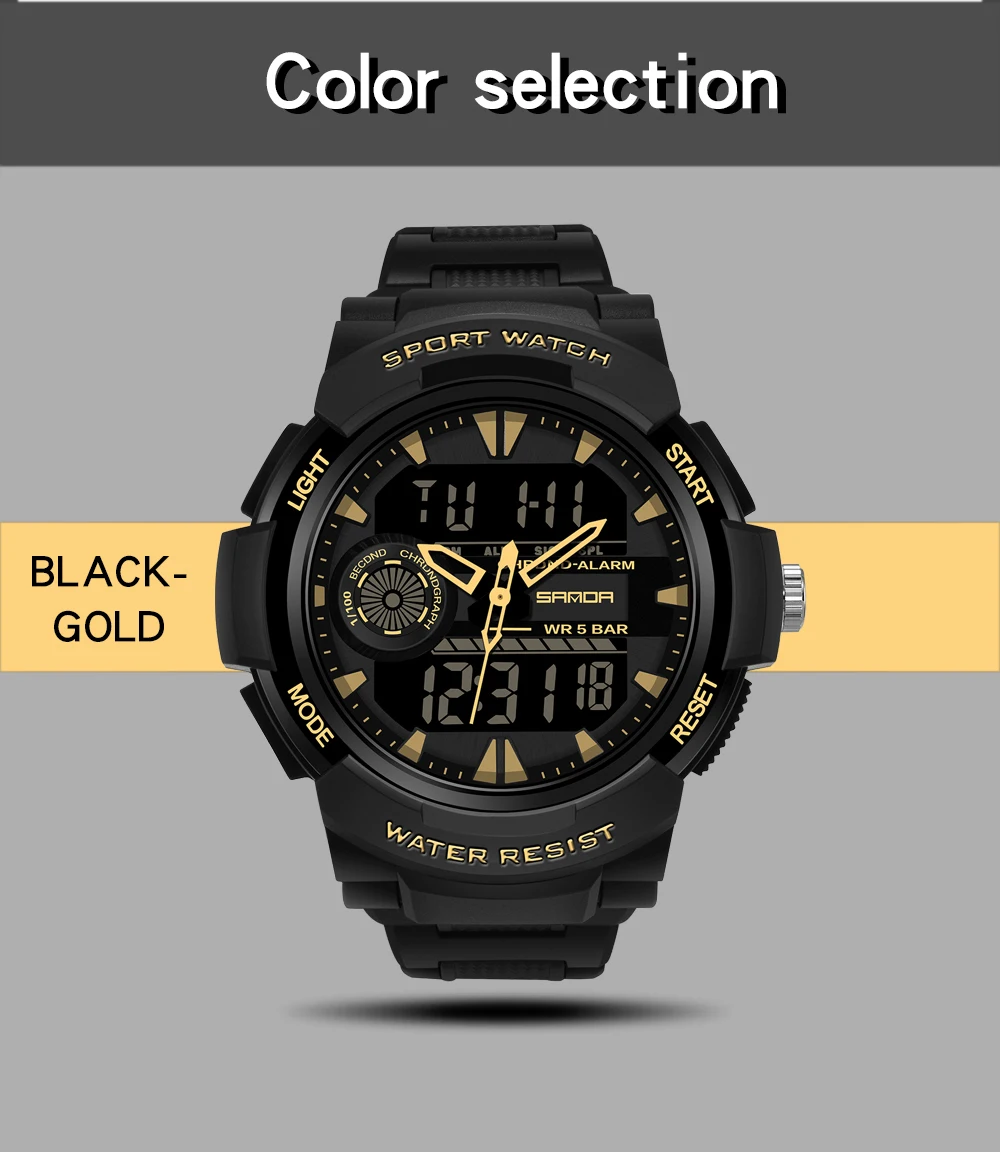 | SANDA Fashion Outdoor Military Sport Watch Men Multifunction Watches Alarm Clock 5Bar Waterproof Digital Watch reloj hombre 6002 |