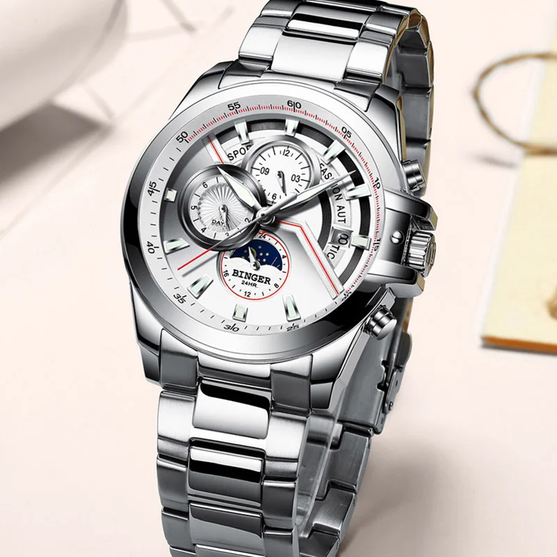 Buy Now On AliexpressGenuine Luxury Switzerland BINGER Brand Men automatic mechanical Luminous waterproof sports full steel belt male fashion watch