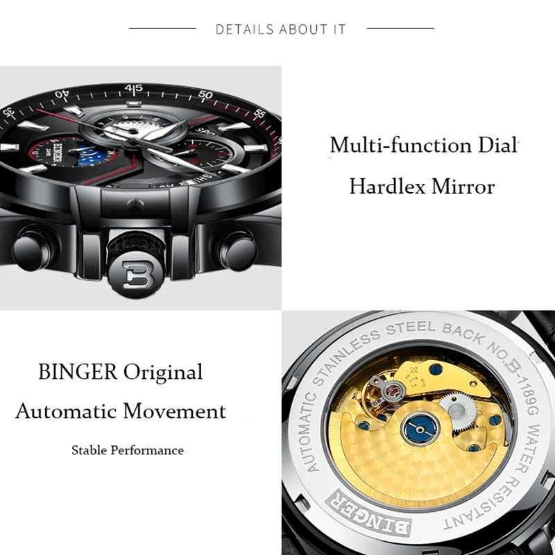 | Switzerland Automatic Mechanical Watch Men Binger Sports Mens Watches Swimming Wristwatches Waterproof relogio masculino 2019 |