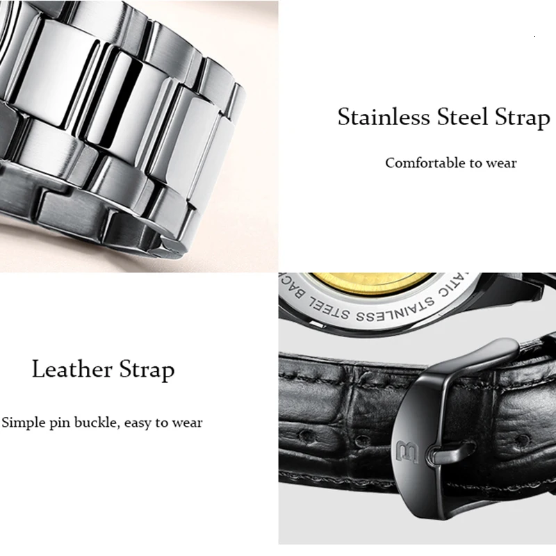 1.About the watches of our stores and the package of watches 2.About the small dial in the watches 3. The watch is waterproof 6.Warning: watch pointer to 8 p.m. until 4 am the next day, all the time, please don't adjust calendar, week speed-dial buttons and press the months. Otherwise it will appear the phenomenon of calibration is ineffective, and may make speed-dial buttons infarction damage to push again, movement will be damaged. Mechanical watches should away from television, computers and other things with magnetic fields, so as not to affect the watch work. 7. If you have any questions, please contact us first. we can resolve for you sincerely want to and resolve for you. If we not online or get off work, please left a massage to us. we will reply you in time . Payment Shipment Warranty and Guarantee Feedback Best Price Comparison With Switzerland Automatic Mechanical Watch Men Binger Sports Mens Watches Swimming Wristwatches Waterproof relogio masculino 2019